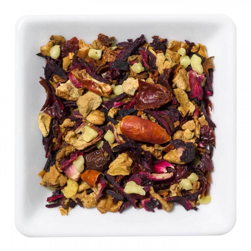 Scortisoara, ghimbir, cuisoare, mar, struguri, hibiscus, rooibos, macese, coacaze rosii, migdale, citrice, cardamon.